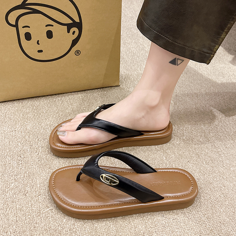 小さな人の字のスリッパの女性の靴2024の新型の夏の平底は足を挟んで糞を踏んで感じます。