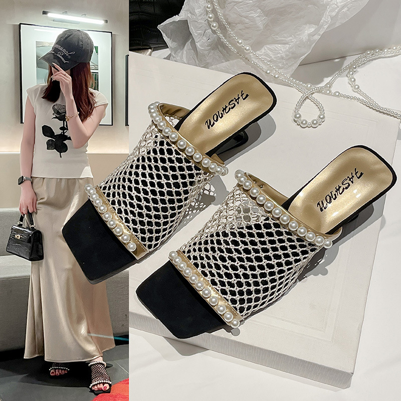 ファッショナブルなフレンチスタイルのハイエンドハイヒールスリッパ2025シーズン夏の気質ファッショナブルで多用途なスカート付きレディースシューズ