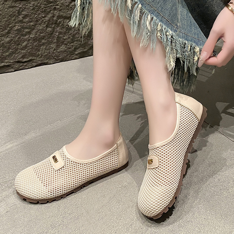 通気性のあるメッシュ厚底ローファー 2025 夏の新薄型中空メッシュシューズカジュアルシューズ包頭スリッパ