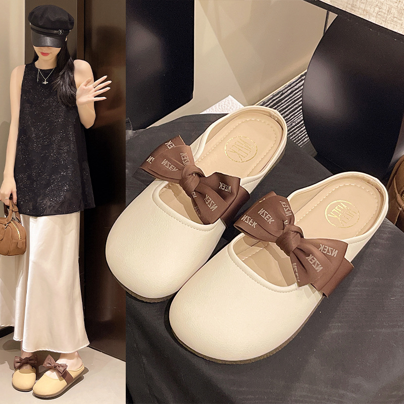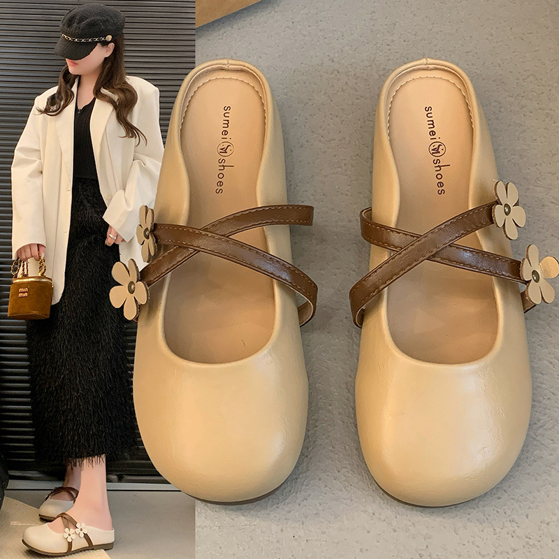 包頭ハーフスリッパ 2025 春夏新作ネット有名人怠惰な片足フレンチスタイルの優しい気質ハーフスリッパ