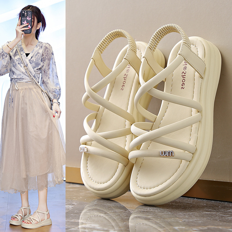 Senshi 2025 新しいフェアリースタイルローマン厚底サンダルアウターウェアソフトソール多用途カジュアルスカートビーチサンダル