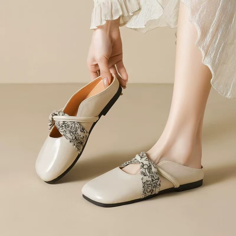 Senshi 2025 春夏スクエアトゥシューズレディースフラットスリッポンソフトソールつま先ハーフスリッパ夏アウタースリッパ女性用