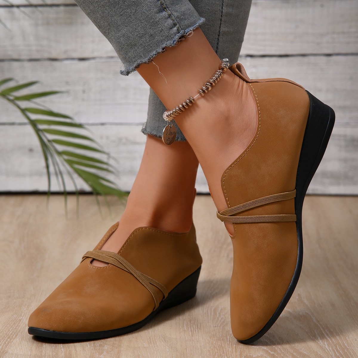 クロスボーダーの新型シンプルな靴女性2025夏の欧米風のゴムバンドの坂と角の頭の浅い口の豆の靴の卸売り