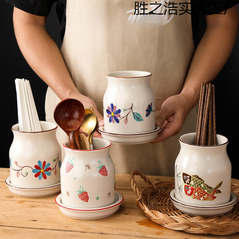 セラミック箸チューブクリエイティブな新しい箸かご家庭用多機能排水箸かご収納キッチン食器収納