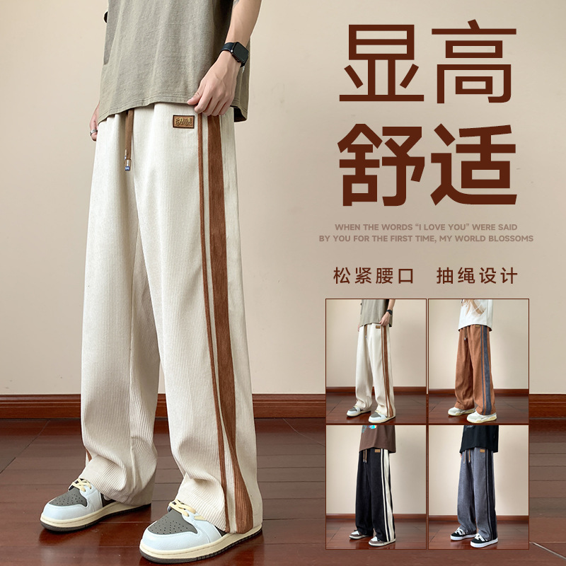 包郵便2024春秋ゆるいカジュアルパンツ男性青少年包縁コーデュロイファッション男性ストレート2024