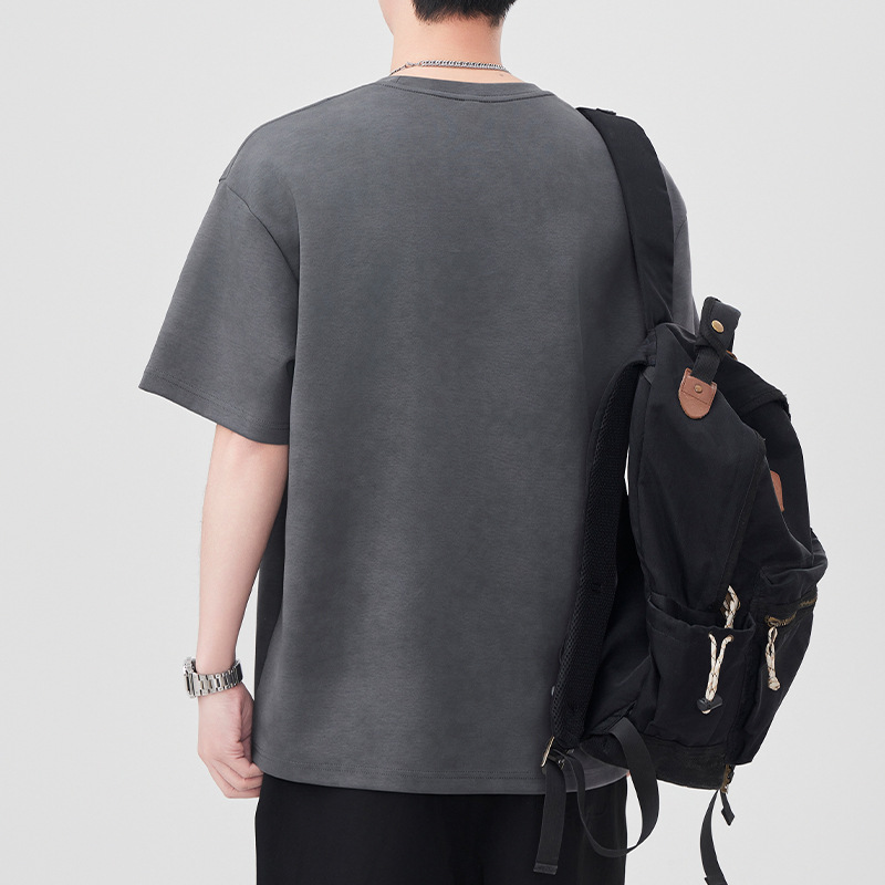 送料無料 2025 新しい夏のルーズカジュアルラウンドネック Tシャツ無地多用途半袖トップトレンディなブランドメンズ高 2025