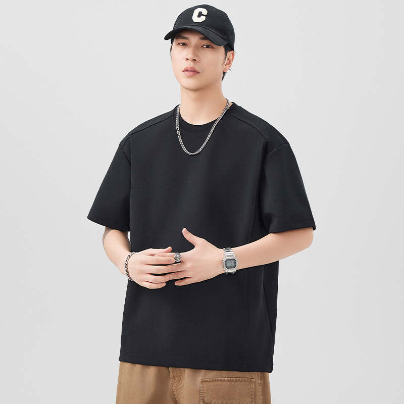 送料無料 ヘビーウェイト 半袖 Tシャツ メンズ ゆったり トレンド ブランド メンズ 無地 ラウンドネック プリーツ 半袖 2025