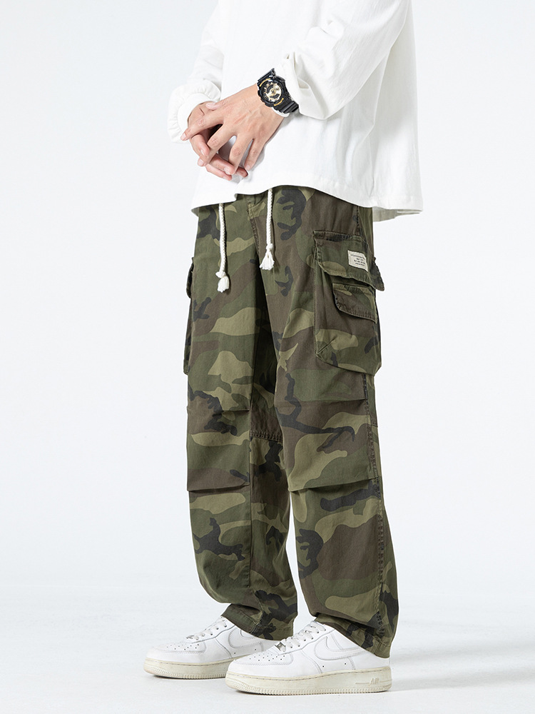 送料無料メンズユース迷彩アメリカ軍アウトドア機能ルーズストレートパンツマルチポケットオーバーオール252025