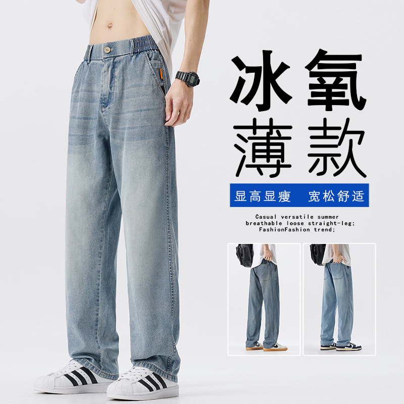 送料無料 リヨセル テンセル ジーンズ メンズ 夏 薄手 ゆったり ストレート アメリカ トレンド ブランド ドレープ カジュアル ワイド 2025