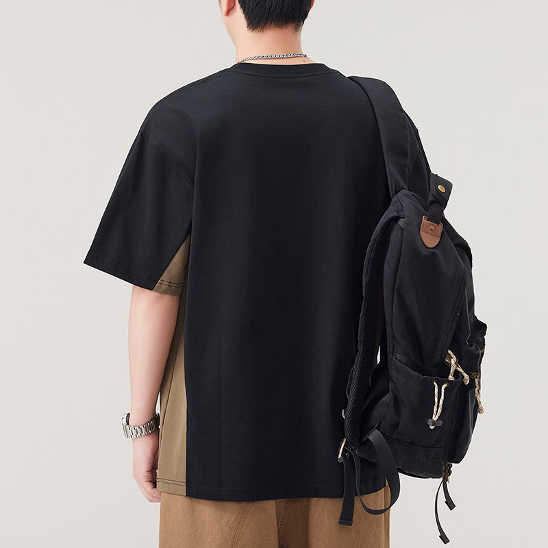 送料無料夏の新しい半袖 Tシャツメンズステッチカラーブロックラウンドネックメンズトップス日本のレトロトレンディブランドメンズ 2025