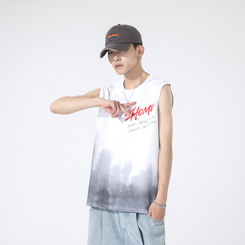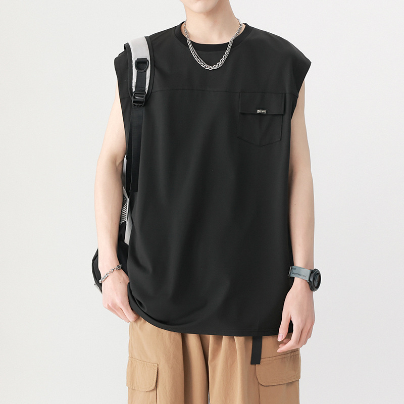 包郵便夏重ポンド袖なしベスト男性ゆるい潮牌insカン肩半袖大サイズ運動フィットネスバスケット2024
