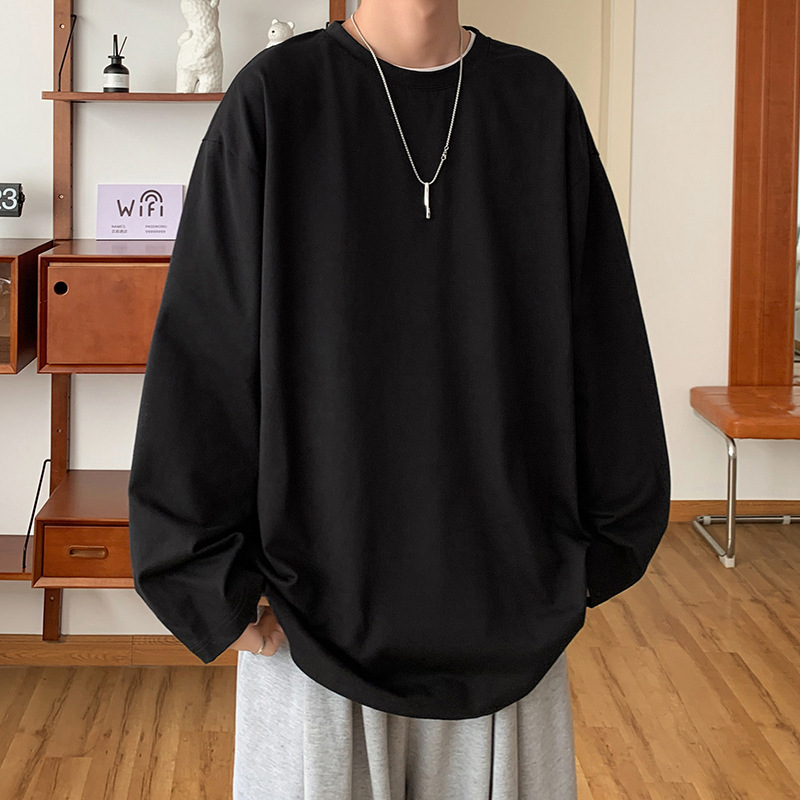 包郵便底シャツ綿金男春の新純色200グラム純色二開丸首長袖カバー2024