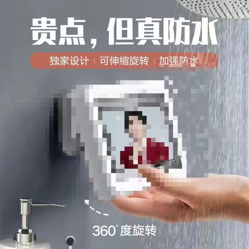 新型浴室穴なし壁掛けケース防水タッチ携帯電話スタンド360度回転折り畳み伸縮可能