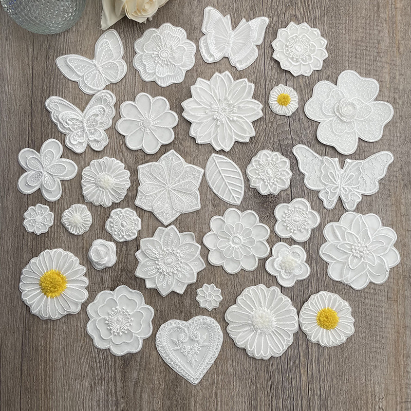 粘着式の白いレースのパッチ、蚊帳、網戸、衣類の布の穴を補修するためのパッチ、オーガンジーの装飾パッチ