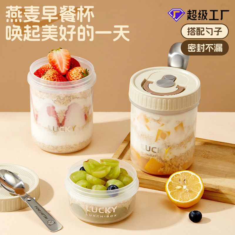 シンプルなオーバーナイトオートミールカップ、新しいオフィス朝食ヨーグルトカップ、スプーン付きミルクカップ、サラダカップ、カスタマイズ可能なロゴ