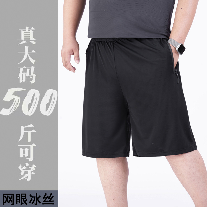 半ズボンの男性の夏の網の目の氷の糸の5分のズボンは太って大きいサイズの500斤のスポーツのズボンの弾力性の高い腰の大きいパンツをプラスします。