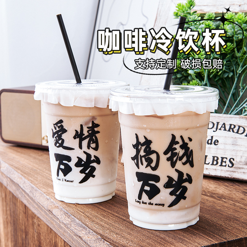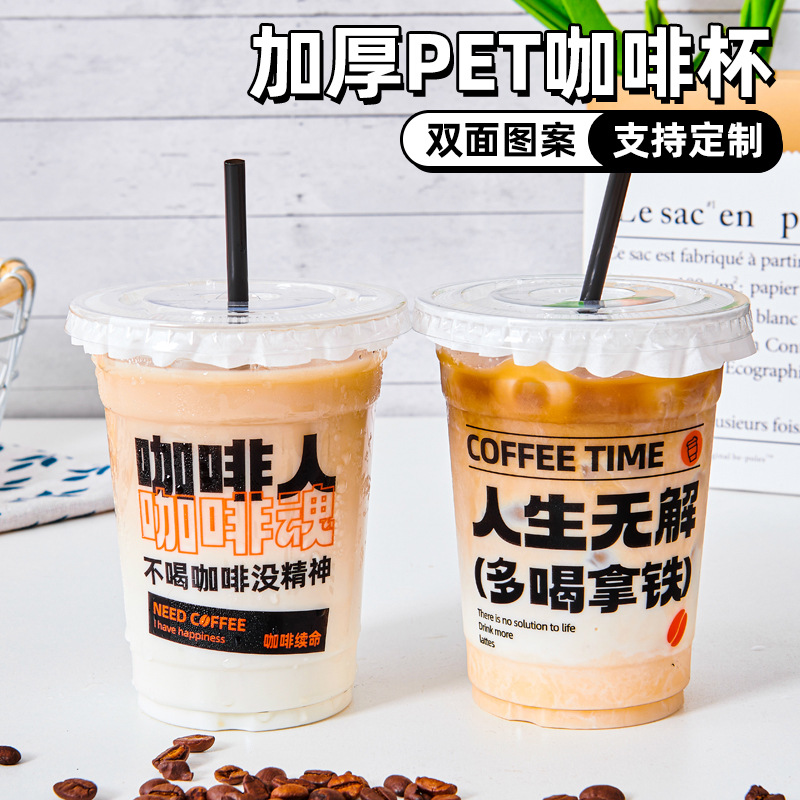 ネットレッドpetコーヒーカップ使い捨て蓋付き厚い冷たい飲み物プラスチックラテミルクティー商用自家製外付け