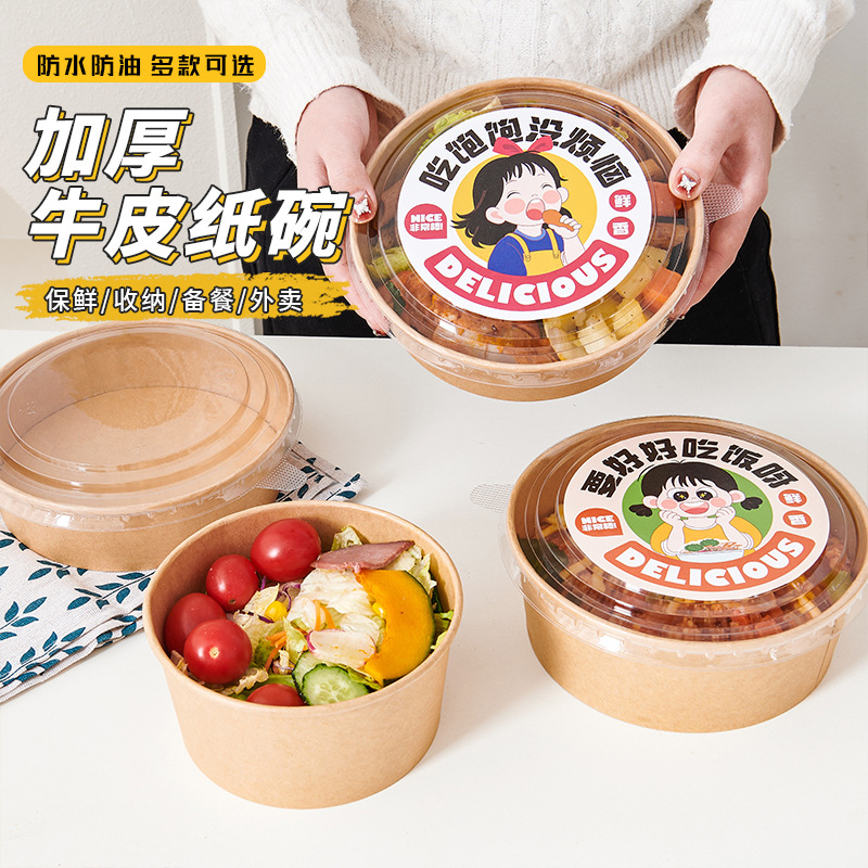 クラフト紙の包装箱の使い捨て紙の碗のご飯の碗のピクニックの箱のサラダの碗のテイクアウトの弁当箱のファーストフードの果物の箱