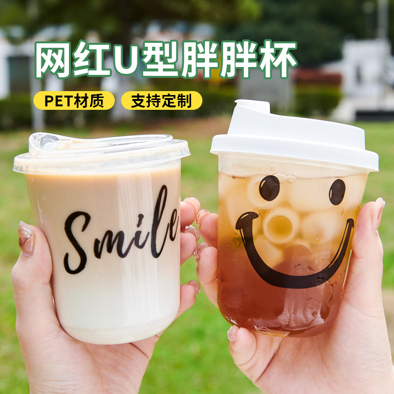 アメリカンミルクティーカップ使い捨てコーヒーカップ蓋付きu型太ったカップ冷たい飲料カップ透明包装カップ