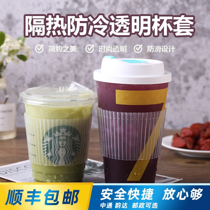使い捨てプラスチック透明カップカバー漏れ防止断熱冷ミルクティーコーヒーと漏れ防止紙マット漏れ防止紙