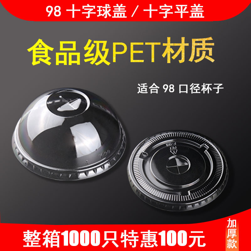 使い捨てpetカップ飲料ジュースカップ透明プラスチック包装カップ98口径カップカバー漏れ防止カップカバー1000本