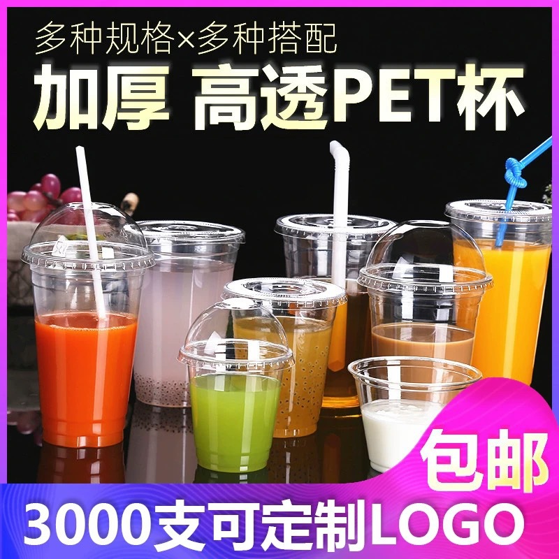 使い捨てpet透明プラスチックミルクティーカップジュース冷たい飲み物コーヒー包装カップ厚い蓋付きロゴ