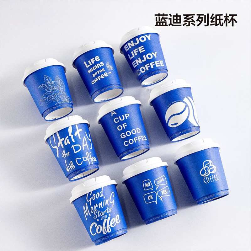 使い捨てコーヒー専用紙コップ蓋付きクレイ英全青漏れ防止ミルクティー高級外付け家庭用ホットカップ