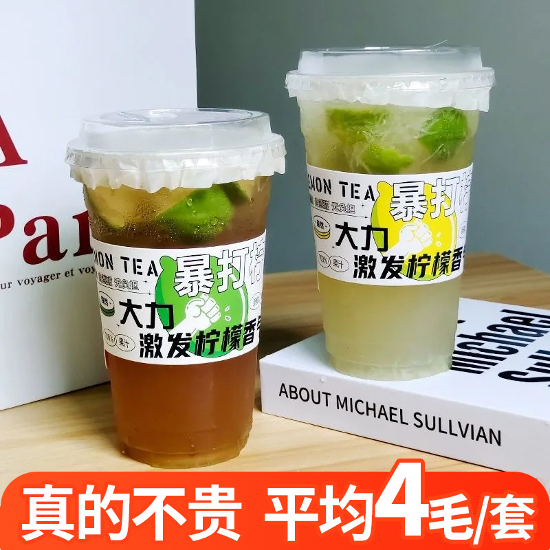レモン茶コップを暴く使い捨てミルクティーカップ蓋付き98口径PET冷たい飲み物コップを一度に露店する