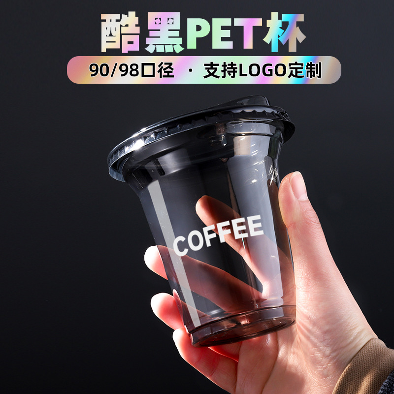 使い捨て冷たいコーヒーカップpet透明カバー付き黒色厚さ400カップ氷アメリカ商用