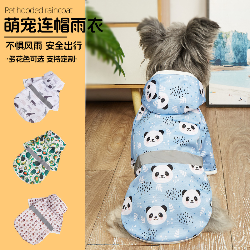 オーダーメイドソース工場ペットレインコート漫画プリントテディ比熊小型犬防水服フード付き犬レインコート