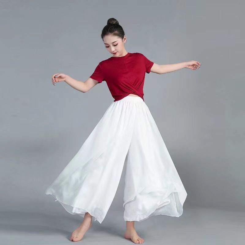 大きいサイズのカジュアルシフォンワイドレッグパンツ女性のための 2025 春夏新作ハイウエストルーズドレープ中国風ダンスパンツ多用途