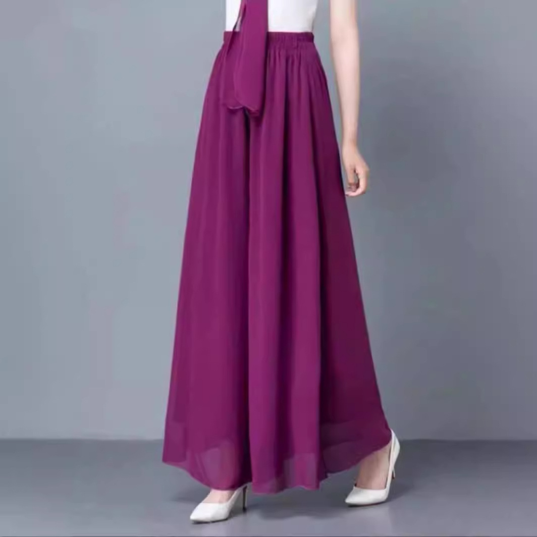 新国風高腰純色シフォン垂れ感スカートズボン2024夏の薄いタイプのカジュアルなカジュアルな足の9分のズボンの女性