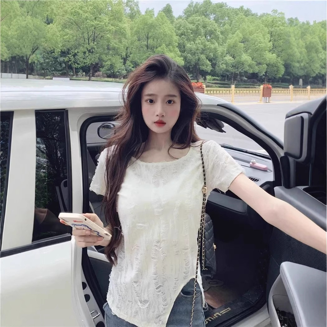 夏不規則な中空穴 Tシャツ女性のための 2025 新しい純粋な欲望デザインニッチシックなスリム半袖トレンド