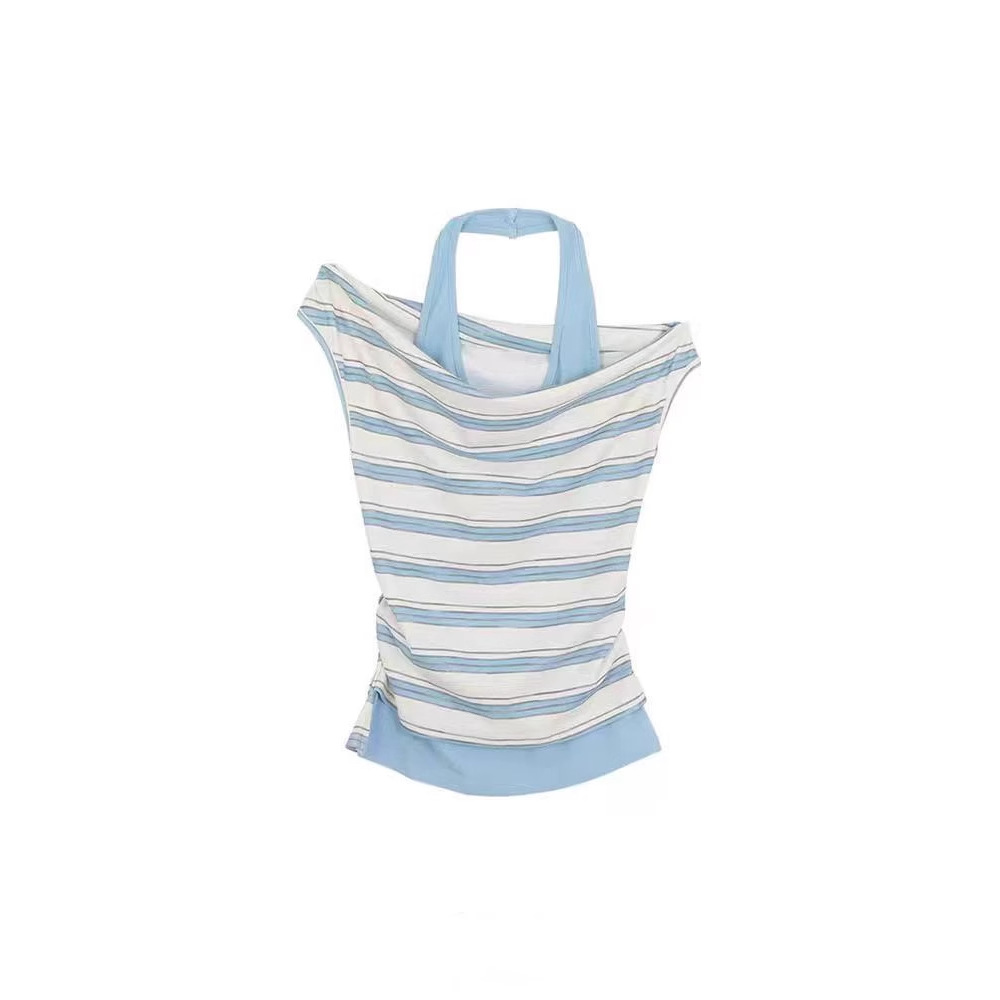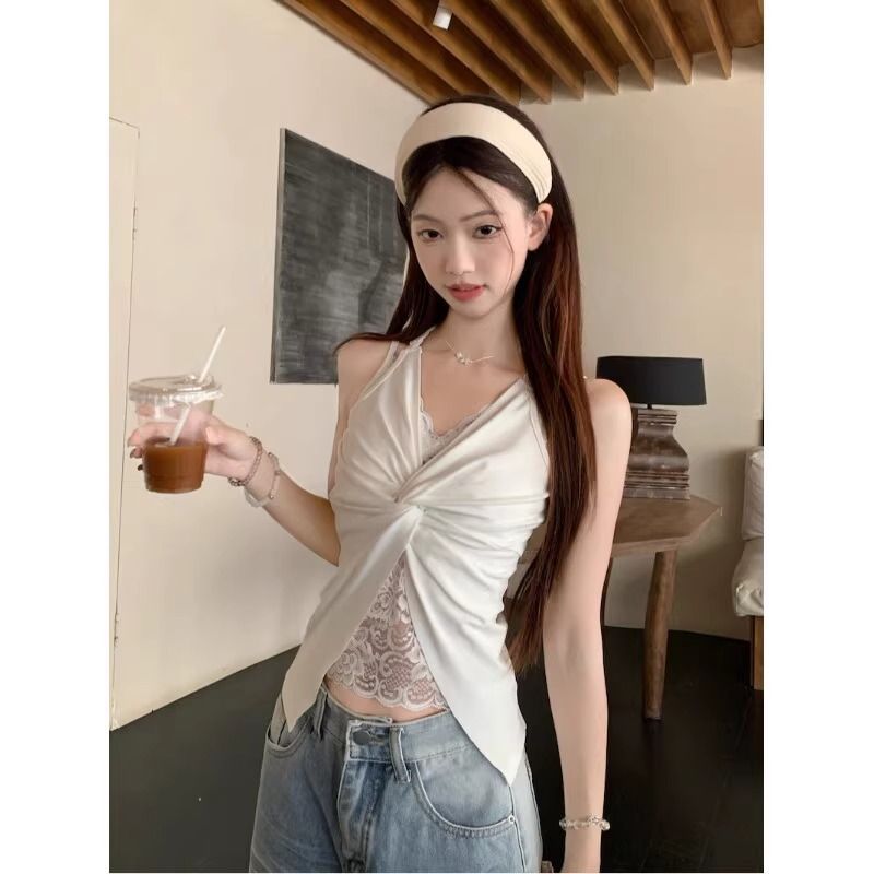 セクシーなデザインのレースステッチノースリーブベスト夏の新しいツイストVネックホットガールホルターネックスリムショートトップ