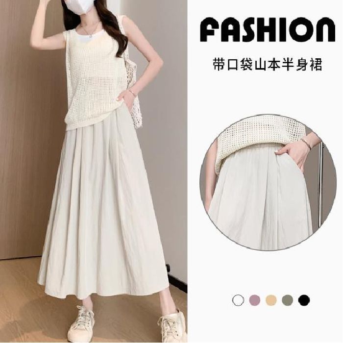 2025年新作ハイウエストプリーツスカート韓国風レイジースタイルポケットカバー股痩身Aラインテクスチャーマウンテンブレンドスカート