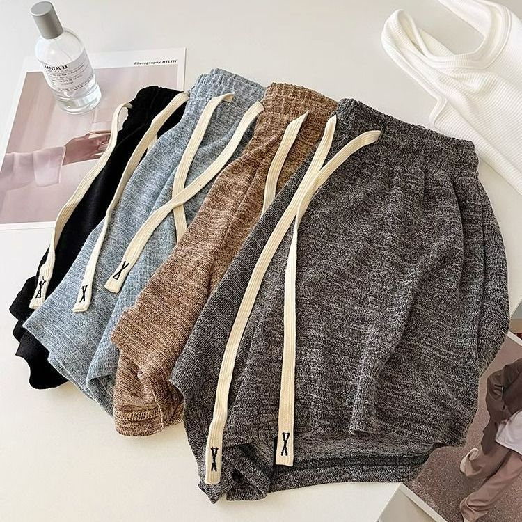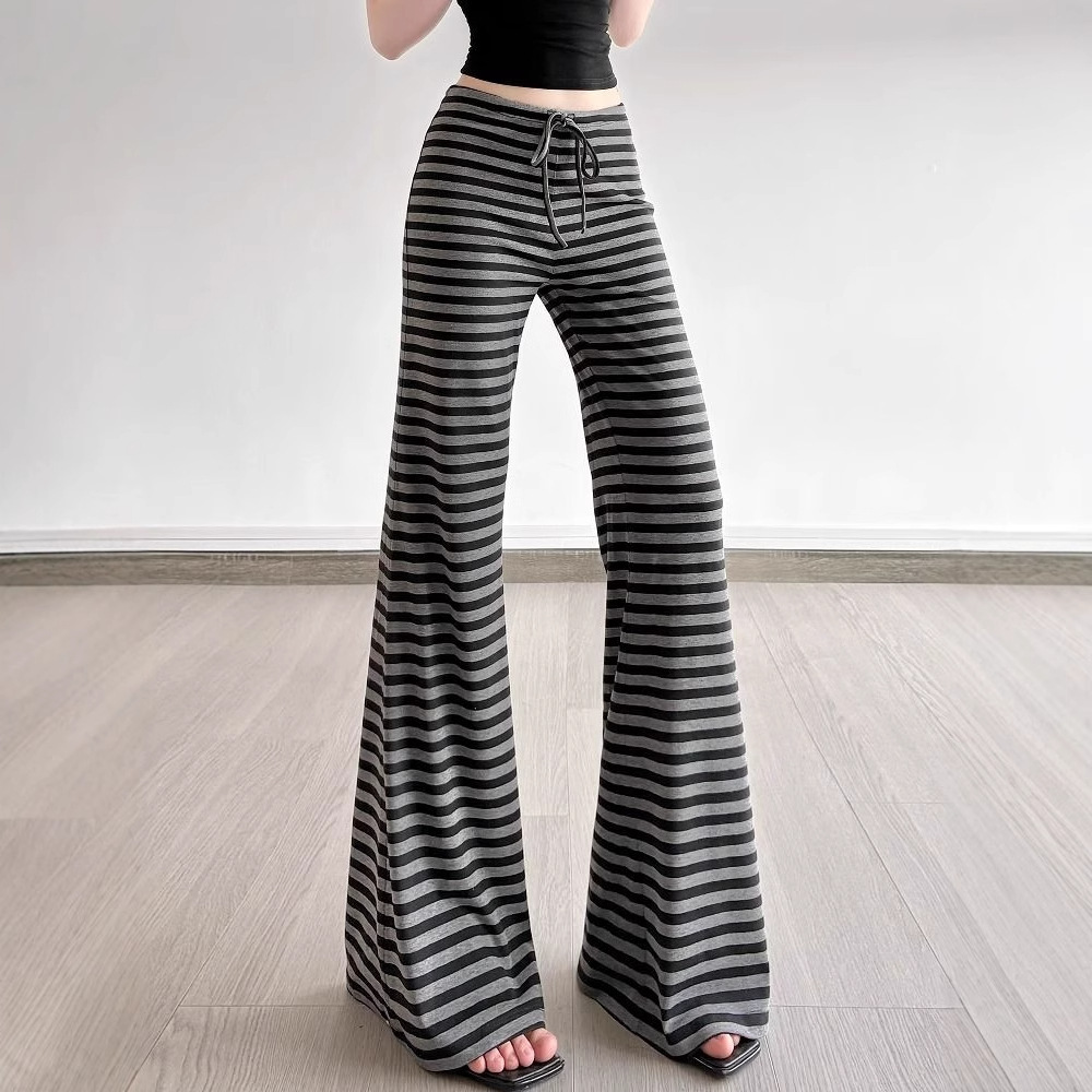 ニットカジュアルパンツ、スポーツスタイル、アメリカンレトロ、コントラストストライプ、ストラップ付き、ほんのりフレア、ホームウォーキングパンツ、ファッショナブルで多用途