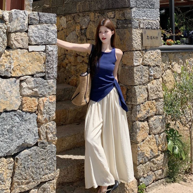 不規則なノースリーブベストトップフレンチスーツ夏のTシャツレディース+ドレープルーズハイウエストキュロットツーピーストレンドセット