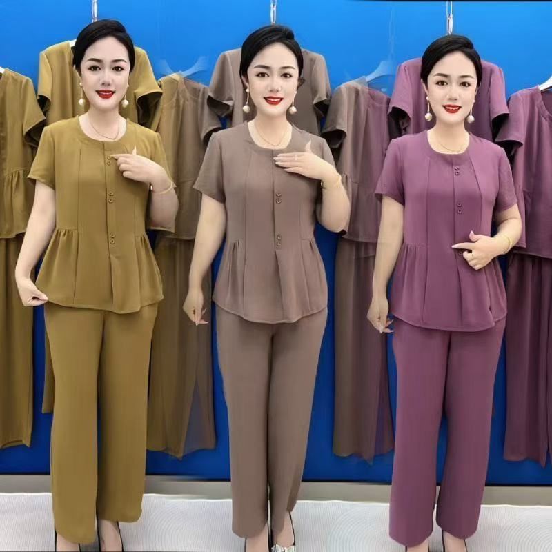 2025 夏綿シルク夏半袖 Tシャツ大きいサイズゆったり快適な西洋スタイル夏カジュアル痩身スーツ