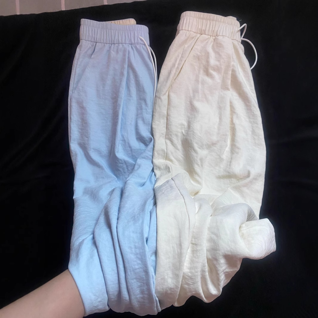 2025 新しい夏のミルクペーパーパンツカジュアルルーズハイウエスト巾着ワイドレッグパンツストレートレッグフロアレングスの女性のパンツトレンディ