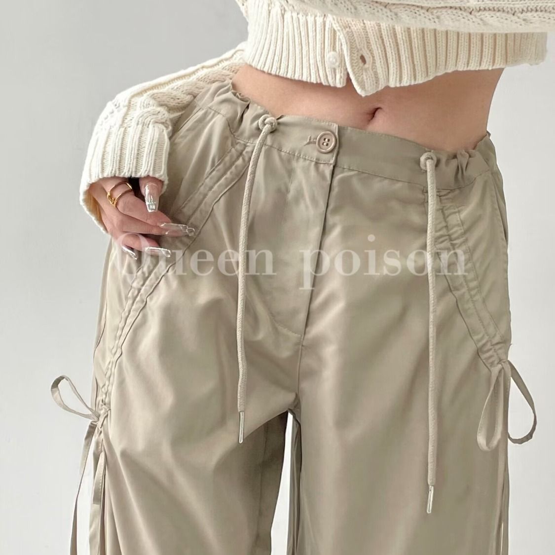 ジャズダンスデザインカジュアルワイドレッグパンツ女性のための 2025 春夏新作巾着リボンスリムレギンストレンディ