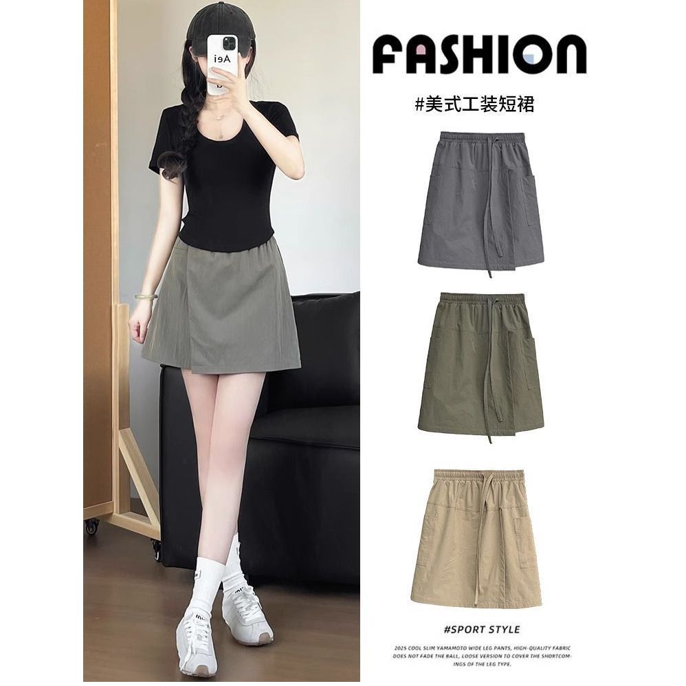 アイスシルク山本小スカート夏 2025 韓国スタイルアメリカンカジュアルスリムハイウエストスポーツワークウェアスカート女性のトレンディな