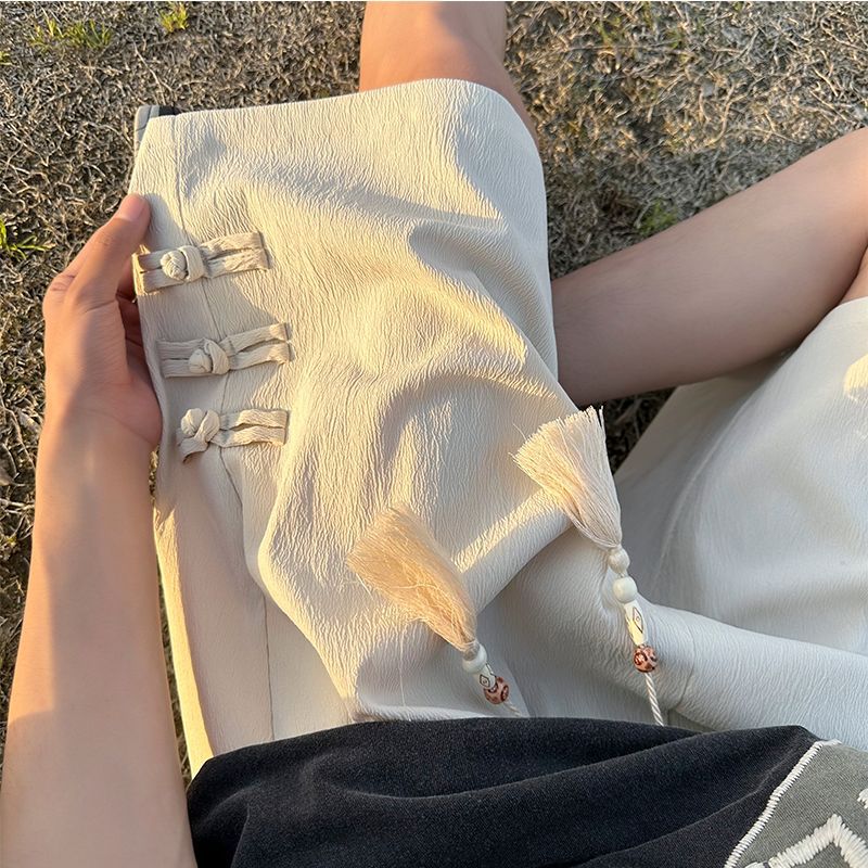 新しい中国風のボタン付きトレンディなスポーツショーツ韓国スタイルの夏の新しいゆったりとしたカジュアルな男女学生の5点パンツ