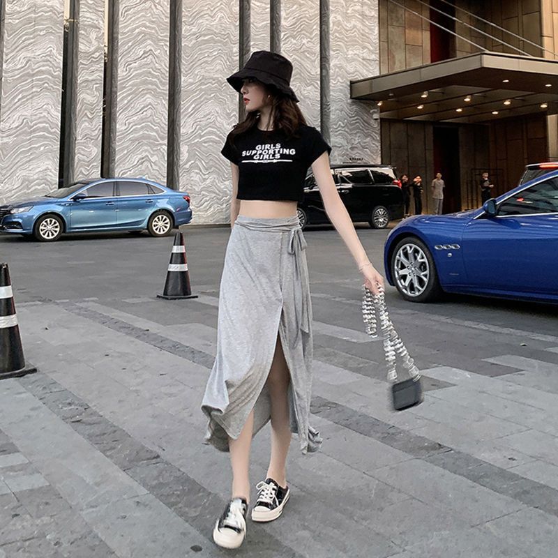 ヨーロッパとアメリカの純粋な欲望甘くてスパイシーなハイウエストスリットスカート夏フレンチソリッドカラーストラップ不規則な痩身アメリカンAラインスカート