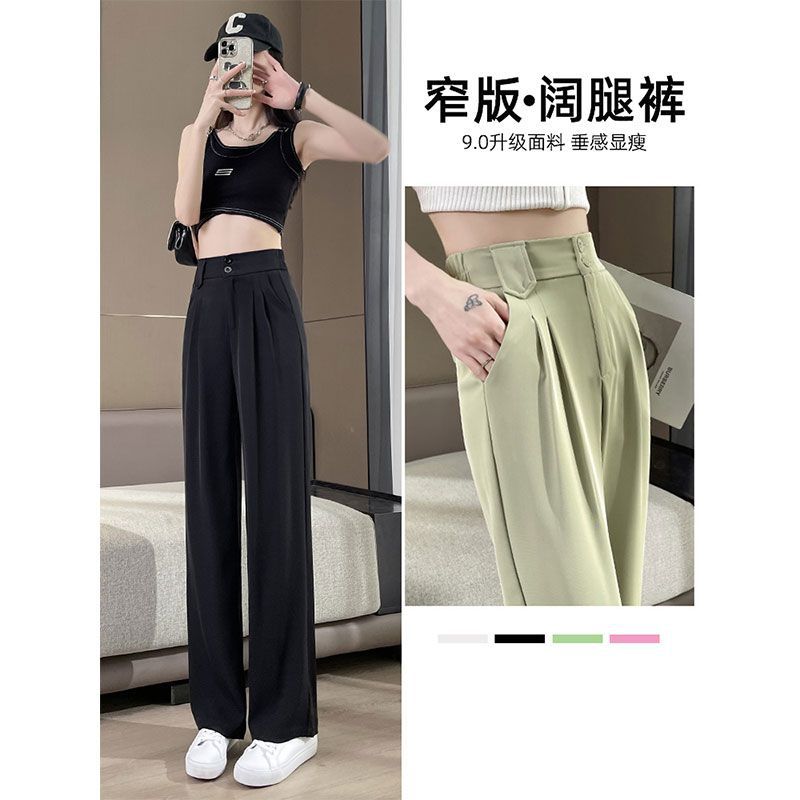 アイスシルクナローワイドレッグパンツレディース薄型2025新作ハイウエスト夏ドレープ小柄ストレートカジュアルスーツパンツ