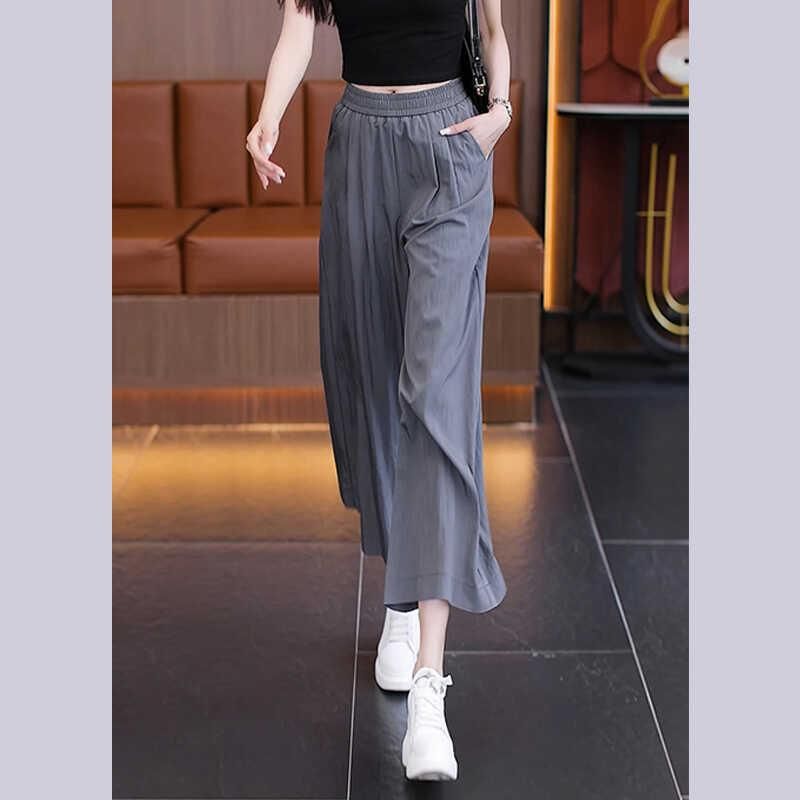 女性用のカジュアルで多用途なソリッドカラーのアイスシルクワイドレッグパンツ、カジュアルで涼しく、通勤、毎日快適で多用途、夏用のフロアレングスパンツ