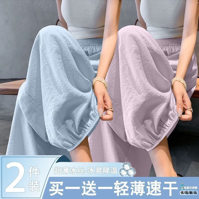 夏の新しいルーズカジュアル薄型ドレープ大きいサイズファッションハーレムパンツトレンディなアイスシルクブルマー女性