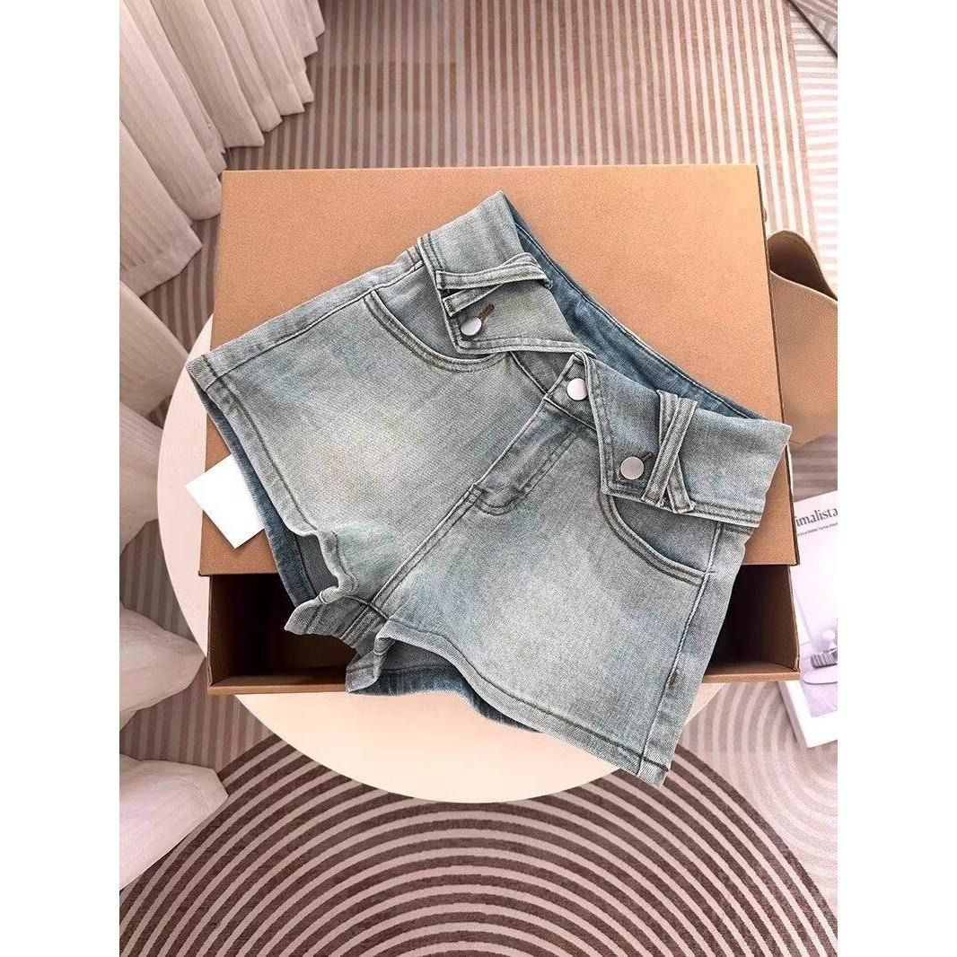 ニッチホットガールダメージカフウエストデザインデニムショートパンツレディースハイウエストストレッチスリムヒップリフティングホットパンツ