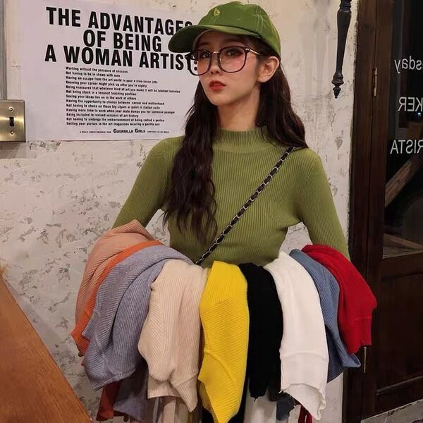 デザイン感のある半高襟の純色に合わせて、カーディガンの女性が秋冬の新型で痩せています。