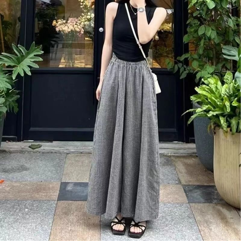 狭いバージョンのストレートパンツの女性2024ファッションの薄い腰の黒いワイドパンツの夏の韓国版のカジュアルなスーツのズボン