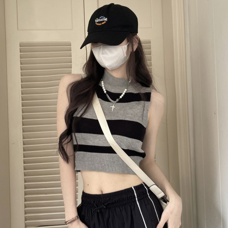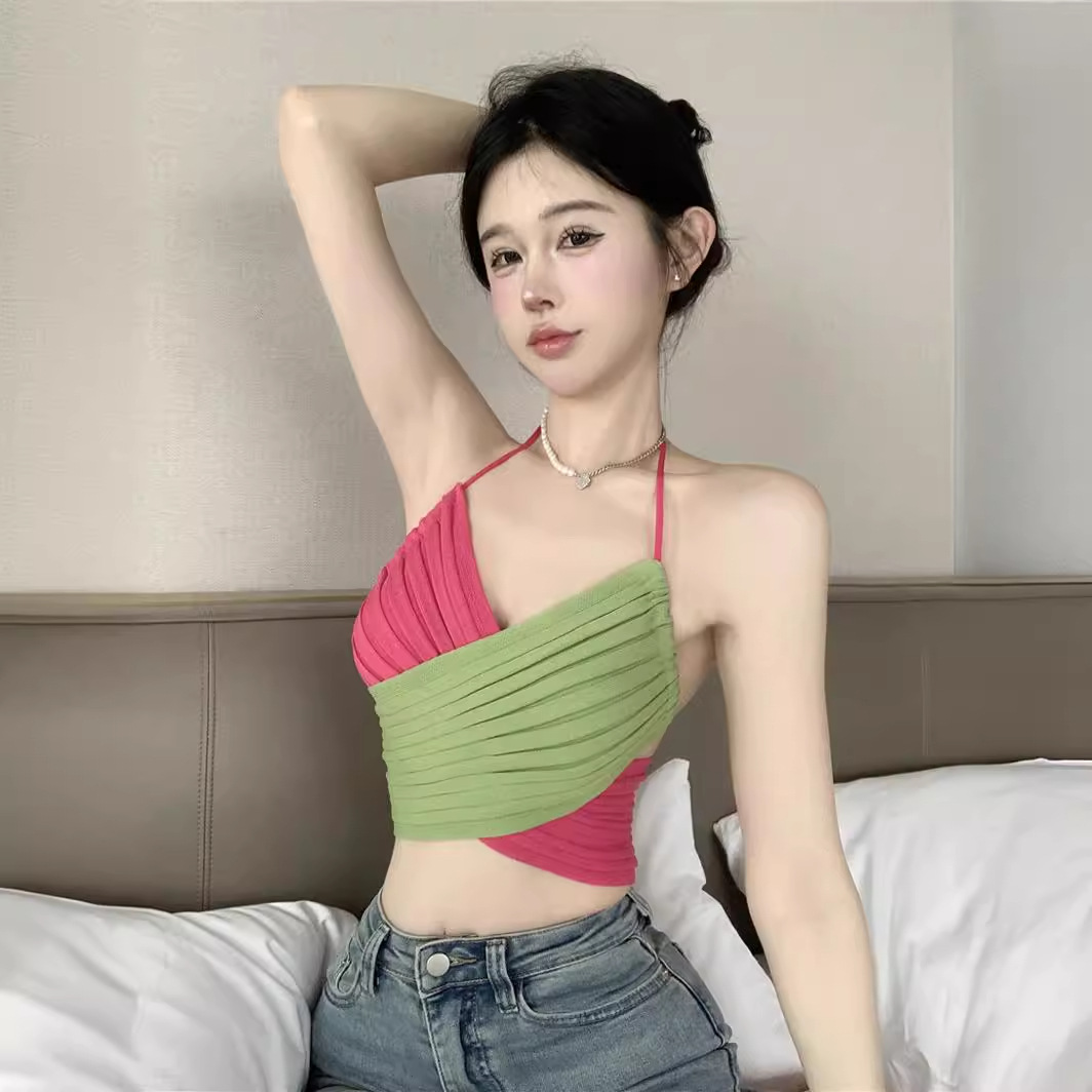 セクシーな超短タイプの色合わせクロス外着首の小さいベスト2024夏のギャルのストラップの美背中のストラップの上着